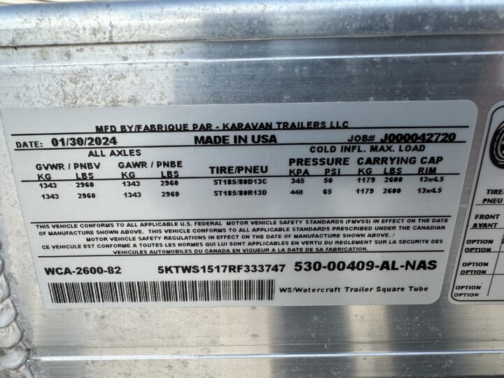 2024 2 Place Watercraft Trailer WCA-2600-82 Aluminum